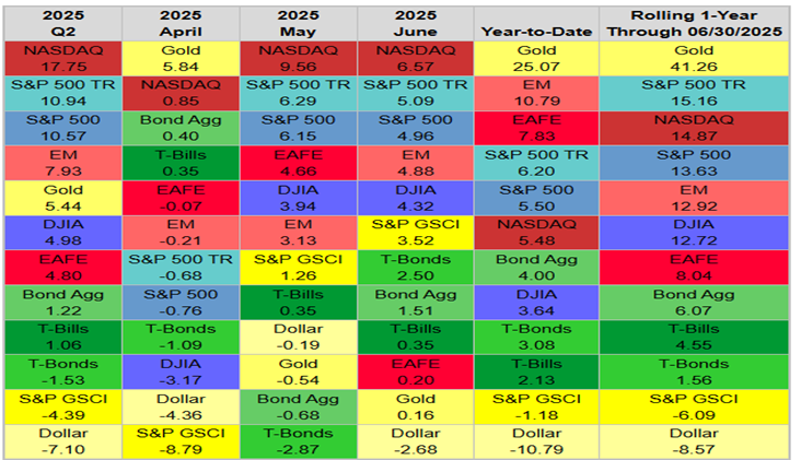 The Nasdaq surged 17.8% in Q2, while gold rose 24.3% year-to-date.